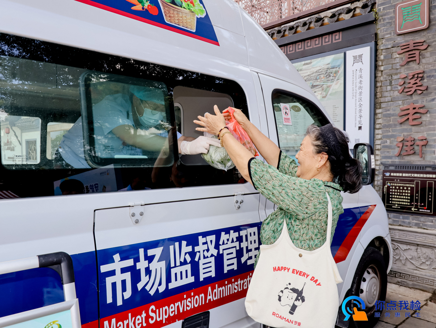 在青溪老街活动现场,“你点我检”“你送我检”“小段食安课堂”三大功能区依次排开,一辆配备专业检测设备的“食品安全快检车”更是成为现场“硬核”亮点,以“可看、可学、可参与”的沉浸式体验,让市民游客在逛老街、品美食的同时,直观感受到食品安全监管就在身边。