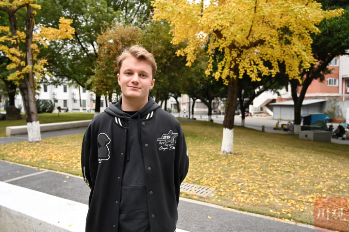 四川大学商学院工商管理专业研一学生Romain来自法国北部城市亚眠,这也是法国总统马克龙的家乡。他今年24岁,中文名字叫卜瑞明。这是他高中的中文老师给他起的,和他的法文名字读音很像。卜瑞明第一次来到中国是10年前高中时期,学校组织研学,去了成都、绵阳,给他留下深刻印象。
