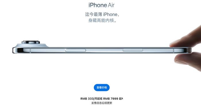 但因为iPhoneAir这款新品采用eSIM卡这一特殊设计,它在国内未能与今年的另外三款iPhone同步发售,官网界面显示“发售信息后续更新”。